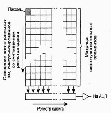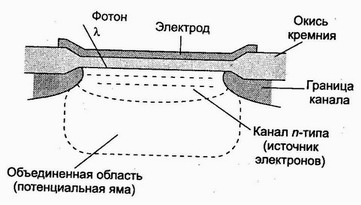 Рис. 2.4. Дисторсия В вариообъективах дисторсия выражается в «подушкообразных» искажениях при длиннофокусном режиме и в «бочкообразных» - при широкоугольном. Для снижения дисторсии в конструкцию объективов включается асферическая оптика, то есть линзы с параболическими, эллиптическими и другими поверхностями. Хроматические аберрации обусловлены зависимостью показателя преломления оптического стекла от длины волны проходящего через него света. В линзовых оптических системах это приводит к разложению луча белого света на несколько одноцветных лучей, которые после выхода из оптической системы пересекают оптическую ось в разных точках. Поэтому в тех случаях, когда освещенность объекта съемки и его фона сильно отличается, на стыке появляется цветовая окантовка, чаще синеватого или фиолетового оттенка, именуемая каймой (fringe). Хроматическую аберрацию уменьшают комбинированием положительных и отрицательных линз, сделанных из разных сортов стекла. 2.6Разрешающая способность оптики Разрешающая способность оптических систем - под этой характеристикой подразумевается способность данных систем создавать раздельные изображения двух близко расположенных точек объекта. Разрешающую способность оценивают по наименьшему расстоянию между двумя точками, при котором их изображения еще не сливаются. До недавнего момента вопрос о достаточности разрешающей способности объективов не возникал. Однако с увеличением разрешения матриц любительских камер периодически складывается ситуация, когда один и тот же сенсор, установленный на разных фотоаппаратах, «рисует» изображение с неодинаковым качеством. Особенно это характерно для сверхкомпактных моделей, к которым тяжело создать объектив с высокими оптическими характеристиками. З Электронно – оптические преобразователи После прохождения оптики световой поток попадает на регистрирующий элемент - электронно-оптический преобразователь (ЭОП). Как уже упоминалось, в основном в этих целях используются матрицы ПЗС - приборов с зарядовой связью. Несмотря на то что ЭОП на КМОП-элементах в последнее время появляются даже на профессиональных моделях, подавляющее большинство любительских фотоаппаратов оснащены именно П3Сматрицами. Рассмотрим подробнее конструкцию этих устройств. Общие принципы Для того чтобы досконально понять, каким образом свет преобразовывается в электрический заряд, необходимо вспомнить раздел «Полупроводниковые приборы» школьного курса физики, точнее -р-n-переход. Однако тема эта слишком объемна, чтобы рассматривать ее в рамках данной работы. Вкратце принцип устройства и функционирования П3С-матриц сводится к следующему. В кремниевой подложке р-типа создаются каналы из полупроводника n-типа. Сверку наносится изолирующий слой окиси кремния. Над каналами размещаются электроды из поликристаллического кремния. При подаче электрического потенциала на электрод в обедненной зоне под каналом n-типа образуется так называемая потенциальная яма, которая способна хранить электроны. После попадания фотона на поверхность n-канала последний генерирует электрон, который хранится в потенциальной яме. Чем больше фотонов попадает на поверхность, тем выше накапливаемый заряд. Чем больше электронов может накопить потенциальная яма, тем больший диапазон освещенности мож