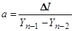 де An — інвестиції за даний період, (1-S) — гранична схильність до споживання (5 — заощадження), а — акселератор, Y— національний доход. Ytt-i і Yn-2 — національний доход, відповідно, минулого і позаминулого року. В залежності від співвідношення мультиплікатора (представленого граничною схильністю до споживання) і акселератора динаміка національного доходу може прийняти або рівномірний, або циклічний характер. Циклічні коливання виникають при такому співвідношенні: