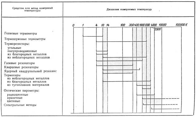 Для измерения температуры выше 4 К используются термошумовые термометры. Область их применения простирается до 1300 К, и поэтому они описаны в следующем параграфе.