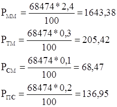 Подставляем цифровые значения в формулы приведенные выше и выполняем расчет: