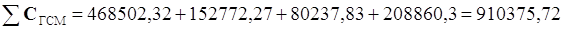 Определяем общую стоимость горюче-смазочных материалов: