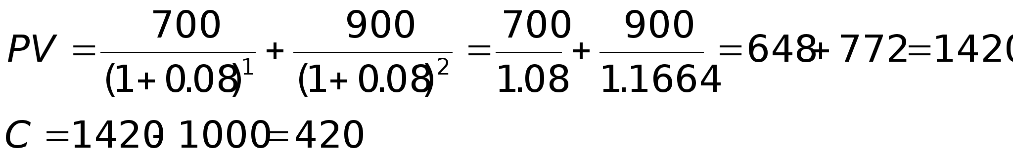 Из нескольких обьектов инвестирования при заданной расчетной ставке процента можно выявить наиболее прибыльный обьект путем сравнения исходных альтернативных величин дисконтированной стоимости капиталов. При сравнении самым прибыльным был бы тогда тот обьект инвестирования, у которого оказывается самая высокая стоимость капитала.