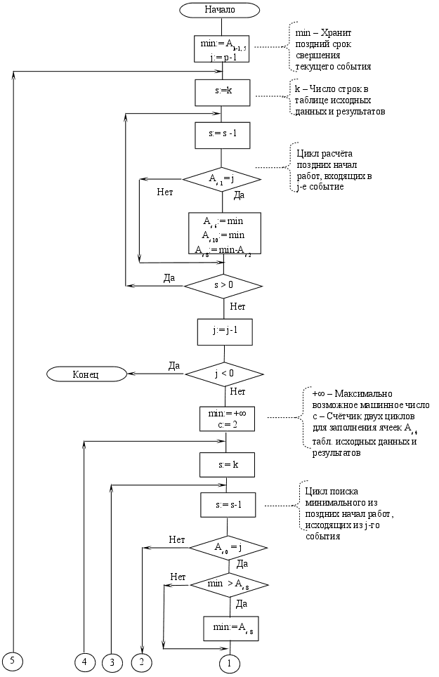 Блок-схема 4. – Алгоритм расчёта поздних сроков свершения событий сетевого графика