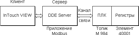 приложениями InTouch и DDE и SuiteLink - серверами, которые, в свою очередь,