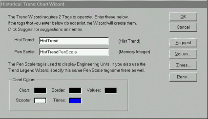 Чтобы добавить в тренд функции масштабирования и перемещения или элементы управления перьями, следует использовать панели Zoom/Pan и Trend Pen Legend (рис.16), соответственно. Для того, чтобы эти компоненты работали совместно, они должны иметь одинаковые имена (Hist Trend). Изменение параметров архивных трендов в режиме исполненияПри