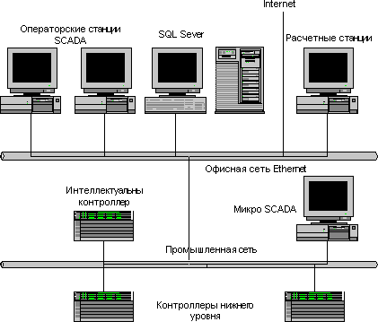 Рассматривая обобщенную структуру систем управления, следует ввести и еще одно понятие - Micro-SCADA. Micro-SCADA - это системы, реализующие стандартные (базовые) функции, присущие SCADA - системам верхнего уровня, но ориентированные на решение задач автоматизации в определенной отрасли (узкоспециализированные). В противоположность им SCADA - системы верхнего уровня являются универсальными.
