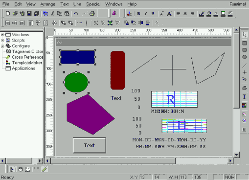 Графический интерфейс Средства визуализации - одно из базовых свойств SCADA - систем. В каждой из них существует графический объектно - ориентированный редактор с определенным набором анимационных функций. Используемая векторная графика дает возможность осуществлять широкий круг операций над выбранным объектом. Объекты могут быть простыми (линии, прямоугольники, текстовые объекты и т. д.) и сложные. Возможности агрегирования сложных объектов в разных SCADA - системах различны. Все SCADA - системы включают библиотеки стандартных графических символов, библиотеки сложных графических объектов, обладают целым рядом других стандартных возможностей. Но, тем не менее, каждая SCADA - система по-своему уникальна и, несмотря на поддержание стандартных функций, обладает присущими только ей особенностями. При рассмотрении графических возможностей SCADA - систем InTouch и Citect предполагается обратить внимание не только на возможности инструментариев по созданию графических объектов, но и на другие предоставляемые пользователю услуги, облегчающие и ускоряющие процесс разработки приложений (проектов). Графические средства InTouchКомпоненты среды разработки InTouch: