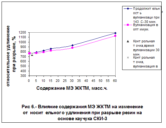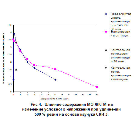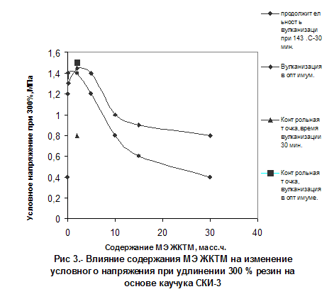 Таблица 14 - Влияние содержания МЭЖКТМ на физико-механические характеристики ненаполненных резин на основе СКИ-3