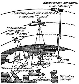 устанавливаемую на космических носителях; аппаратуру, передающую полученную информацию на Землю (на пункты приема информации - ППИ) в подсистему сбора информации. Данные, полученные с помощью космической измерительной подсистемы, содержат для каждого отдельного элемента природного объекта информацию о его состоянии. Эти данные передаются на пункты приема информации и оттуда в банк данных подсистемы сбора информации на хранение. Подсистема получения дополнительной дистанционной информации объединяет средства и методы получения дистанционной информации о природных и антропогенно измененных объектах, осуществляемых в основном в пределах тропосферы. В эту подсистему включены: авиационные средства (самолеты-лаборатории и вертолеты); суда-лаборатории, буйковые станции, наземные передвижные лаборатории, установленная на этих носителях измерительная аппаратура, установленная на них аппаратура, передающая получаемую информацию на пункт приема информации. В структуру космической системы изучения природной среды Земли и Мирового океана в подсистему получения дополнительной информации включены также научно-исследовательские суда-лаборатории, буйковые станции и наземные передвижные лаборатории. В состав судов-лабораторий входят научно-исследовательские суда, экспедиционные суда, морские, озерные и речные суда, специально построенные или перестроенные из другого типа судов для комплексных исследований и для проведения различных специальных исследований (геофизических, гидробиологических и др.) в толще водных масс, морского дна, атмосферы и космического пространства. Так, на борту научно-исследовательского судна космической службы "Космонавт Юрий Гагарин" имеется 110 научных лабораторий. Буйковые станции (автоматические станции) снабжены специальной аппаратурой для получения определенных типов информации через спутники на пункты приема информации, космической системы изучения природных ресурсов. Наземные передвижные лаборатории позволяют получать достоверные и точные данные о природных объектах, процессах и данные на локальных участках земной поверхности. Наземные измерения выполняют синхронно космическими и авиационными измерениями точно в момент прохождения космических аппаратов и авиасредств над данной точкой. Наземные измерения служат базой для проведения необходимых методических работ, связанных с проблемой идентификации природных ресурсов и изучения их свойств на основе сопоставления и корреляции различных данных дистанционного зондирования с данными непосредственных наземных измерений. Все вышесказанное относится к измерениям, выполняемым судами-лабораториями и автоматическими буйковыми станциями. Основные требования, предъявляемые к измерениям (данным), получаемым в подсистемах космической и дополнительной дистанционной информации: синхронность получения всех видов информации; метрологическое единство всех видов измерений; репрезентативность наземных и измерений с самолета относительно территорий, охватываемых космической съемкой; сопоставимость масштабов и разрешающей способности всех видов измерений; оперативность доставки информации с самолета и наземной в пункты приема и обработки космической информации. Репрезентативность в статистике - главное свойство выборочн