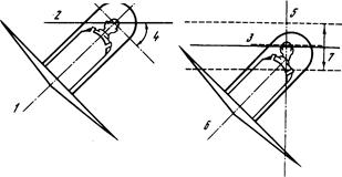 Рис. 4. Основания для предпочтения авиагоризонта с движущимся силуэтом самолета: а — летчик держит голову прямо по отношению к вертикальной оси самолета, и горизонт кажется ему наклонным; б — летчик вынужден поворачивать голову, чтобы горизонт остался фиксированным. 1 — ось, проходящая через голову и тело параллельно вертикальной оси самолета; 2 — реальный горизонт; 3 — плоскость, проходящая через глаза, 4 — угол между линией горизонта и плоскостью глаз; 5 — ось, проходящая через голову; 6 — ось, проходящая через тело; 7 — вертикальное перемещение горизонта конструкцию лицевой части на противоположную. При этом одним из аргументов сторонников изменения вида индикации является ссылка на зарубежный опыт. Поэтому мы и постарались показать, что и за рубежом проблему нельзя считать решенной. Анализ состояния проблемы индикации за рубежом позволяет сделать ряд выводов. 1. Принятый и используемый в течение вот уже пятидесяти лет прибор с подвижной линией горизонта и подвижным силуэтом самолета многие специалисты считают недостаточно пригодным для индикации пространственного положения самолета. 2. За рубежом продолжаются исследования, направленные на выбор и оценку другого принципа индикации пространственного положения, в том числе вида "с земли на самолет". 3. Критика индикации "вид с самолета на землю" основана на практическом опыте эксплуатации (наличие аварий и катастроф из–за ошибок интерпретации показаний авиагоризонта), а также на теоретических представлениях о механизмах восприятия пространства в полете по приборам (теория фигуры и фона, генетическая обусловленность геоцентрического характера представления человеком пространства). Рассмотрим основные результаты отечественных исследований действий летчика при использовании двух видов индикации авиагоризонта. Эксперименты, проведенные авиационными психологами в 40— 50–х годах, показали, что индикатор с подвижным силуэтом самолета обладает преимуществами, с точки зрения восприятия и оценки пространственного положения по сравнению с индикатором противоположного вида. Вероятность правильных решений и скорость реакции были выше при использовании вида индикации "с земли на самолет". В 1977 г. описан летный эксперимент, проведенный с участием планеристов, обладающих летным опытом и вместе с тем не использовавших прежде ни один из оцениваемых видов индикации. Лучшие результаты по качеству пилотирования и по субъективной оценке планеристов показал авиагоризонт с подвижным силуэтом самолета. Исследования, проведенные в наземных условиях (при помощи тахистоскопа и имитатора), также показали большую эффективность действий при использовании индикатора с подвижным силуэтом самолета. Авторы объясняют преимущество индикации "с земли на самолет" более адекватным отражением реальной обстановки в субъективном пространственном образе, регулирующая функция которого тесно связана со сложившейся в фило– и онтогенезе геоцентрической системой отсчета. В исследовании, проведенном на имитаторе полета, при сравнении эффективности вывода самолета из сложного положения выявлены различия в способах действий в зависимости от вида индикации: при использовании индикатора с подвижным силуэтом самолета летчики, выполняя действие, осознанно представляли его пространственное 