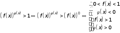 Враховуючи те, що в останні 40-50 років у старших класах середньої школи реалізується функціональний підхід до рівняння, будемо вважати, що степені, в яких і основа, і показник степеня є функціями відзміної величини, означені тільки для тих значень змінних, при яких їх основи додатні (якщо в самій умові задачі не сказано протилежне). Логарифмічні нерівності. Розв’язуючи логарифмічні нерівності, доцільно використати загальну схему рівносильних перетворень нерівностей. Ця схема іноді дає надмірну систему обмежень, яку можна суттєво спростити. Для рівносильності рівнянь надмірність системи обмежень майже не впливає на об’єм роботи щодо розв’язування цих рівнянь - можна не знаходити відповідні значення змінної з цих обмежень, а тільки перевіряти для кожного знайденого кореня. Розв’язком нерівності, як правило, є інтервал (або кілька інтервалів), які містять нескінчену множину чисел, а всі їх перевірити неможливо. Отже для розв’язування нерівності доведеться знаходити відповідні значення змінної з усіх записаних обмежень, і тому чим менше залишиться цих обмежень, тим краще. Бажано запропонувати учням не знаходити окремо область визначення нерівності, а спочатку записувати повну систему обмежень і рівносильну нерівность, а потім намагатися споростити утворену систему. Приклад: Розв’язати нерівность