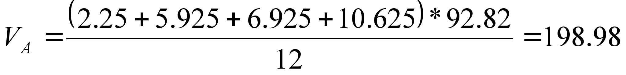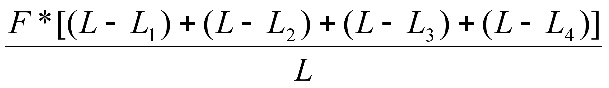 Максимальная поперечная сила на опоре при расположении системы из двух кранов = наибольшей опорной реакции : Mb = 0 : Va*L – F*L – F*(L – L’1) – F*(L – L’2) – F*(L – L’3) = 0 Qmax
