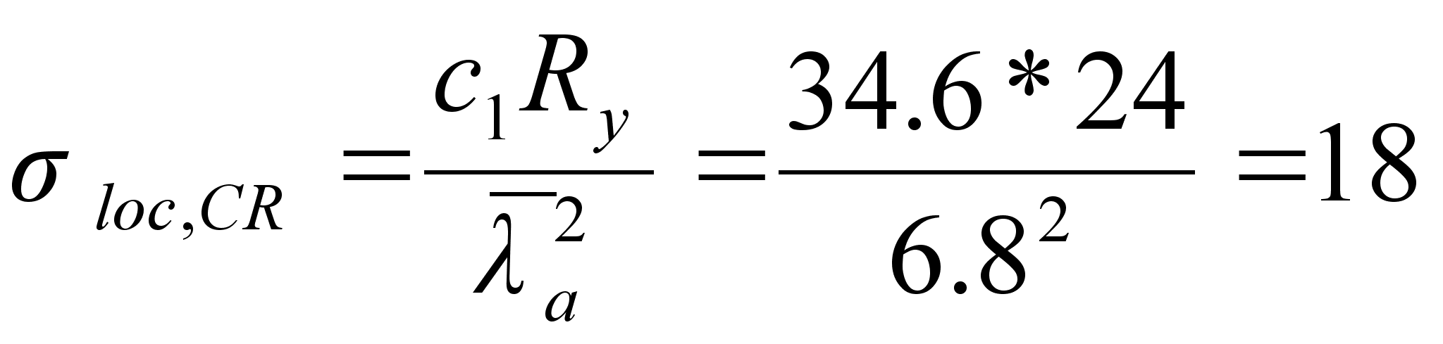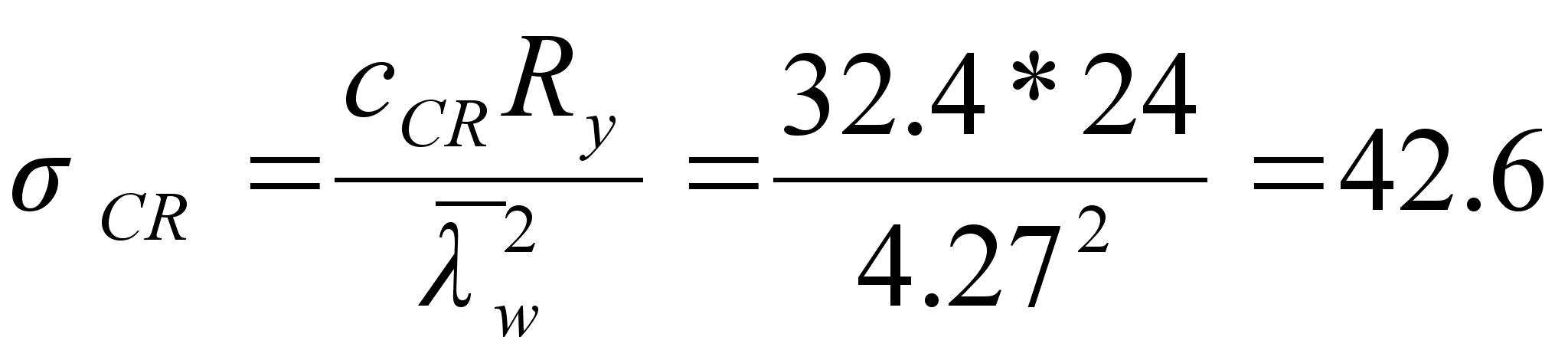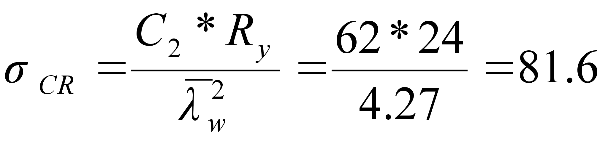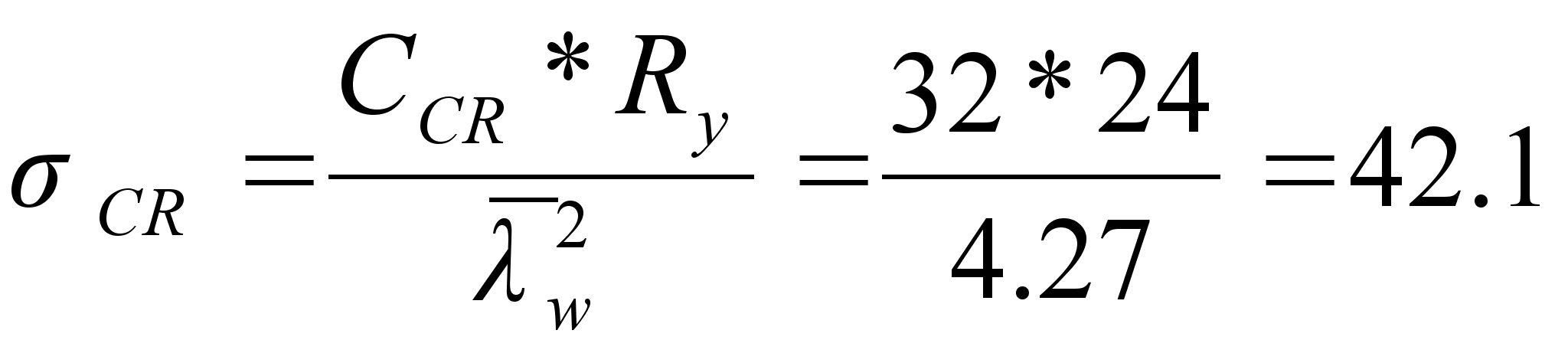 вычисляем по формуле (81) СНиП II–23–81* [3] Касательные критические напряжения по формуле (76) СНиП Коэффициент защемления стенки определяем по формуле (77) норм Критические
