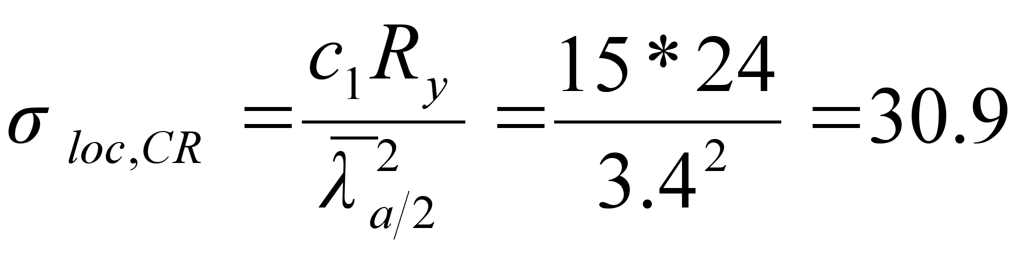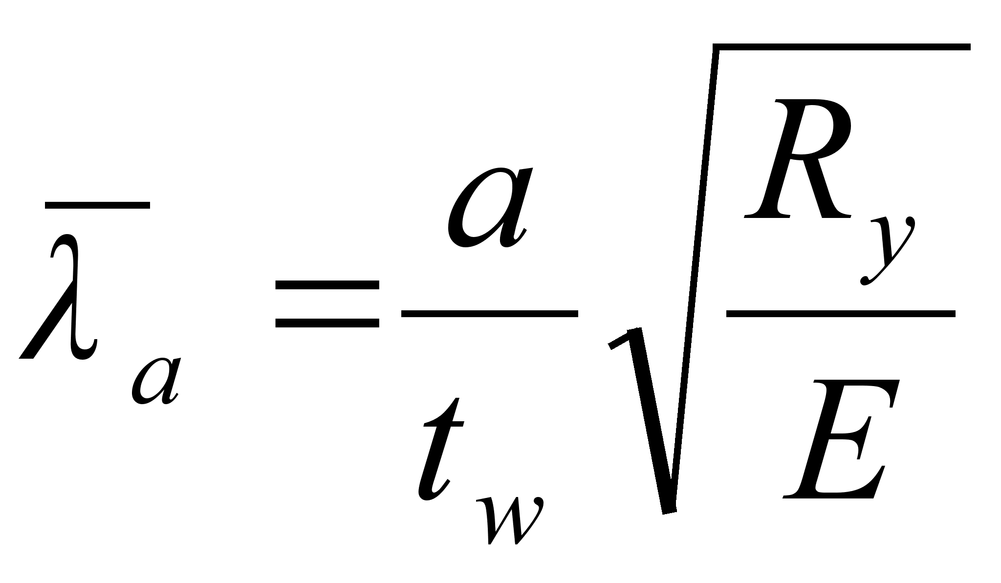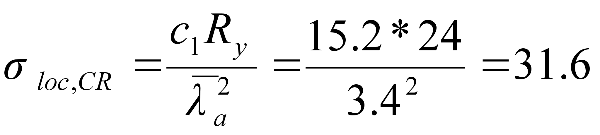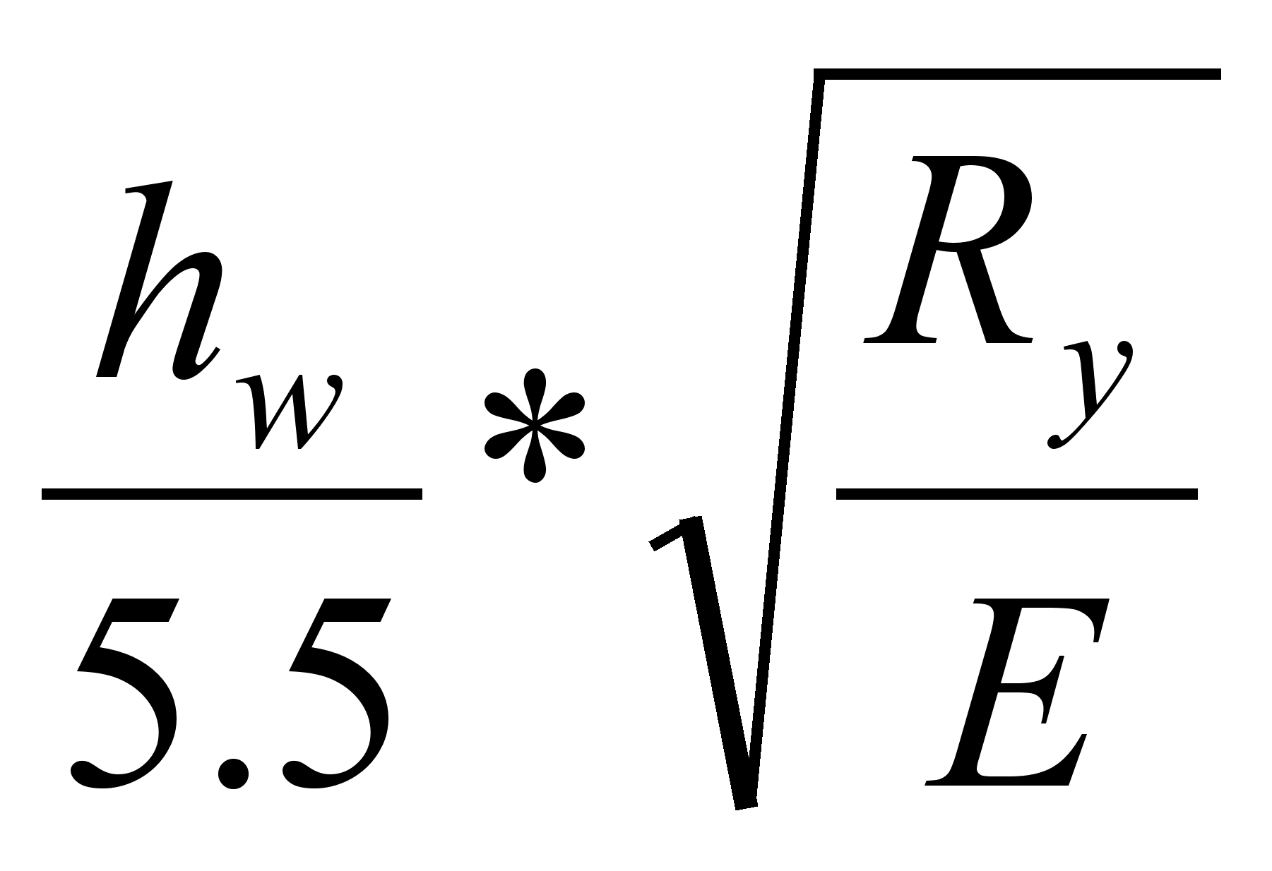 вычисляем по формуле (81) СНиП II–23–81* [3] Касательные критические напряжения по формуле (76) СНиП Коэффициент защемления стенки определяем по формуле (77) норм Критические