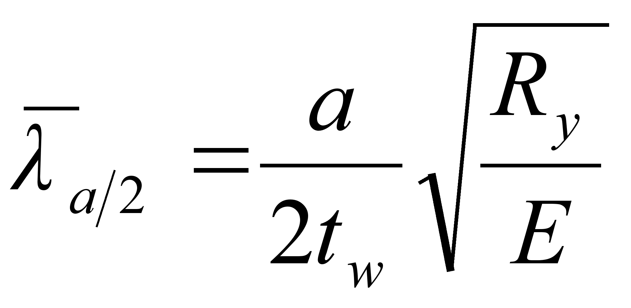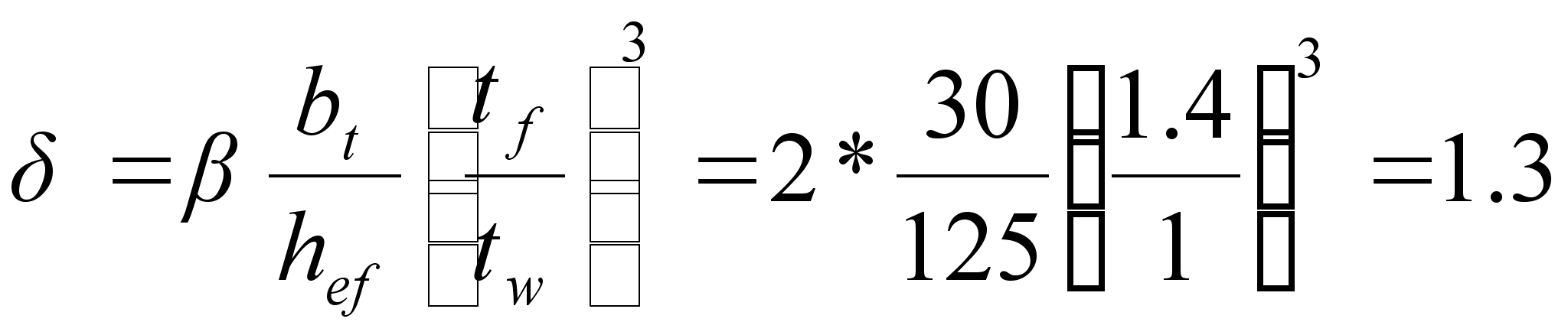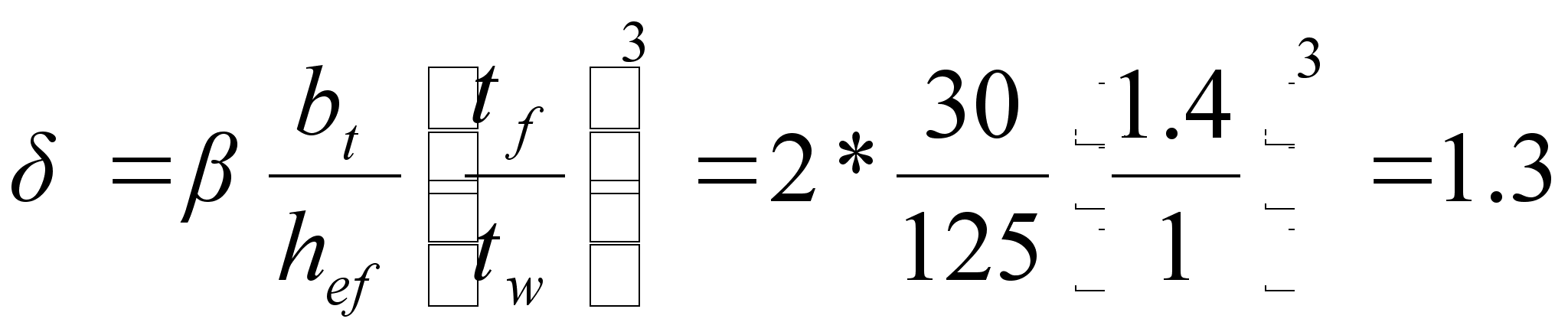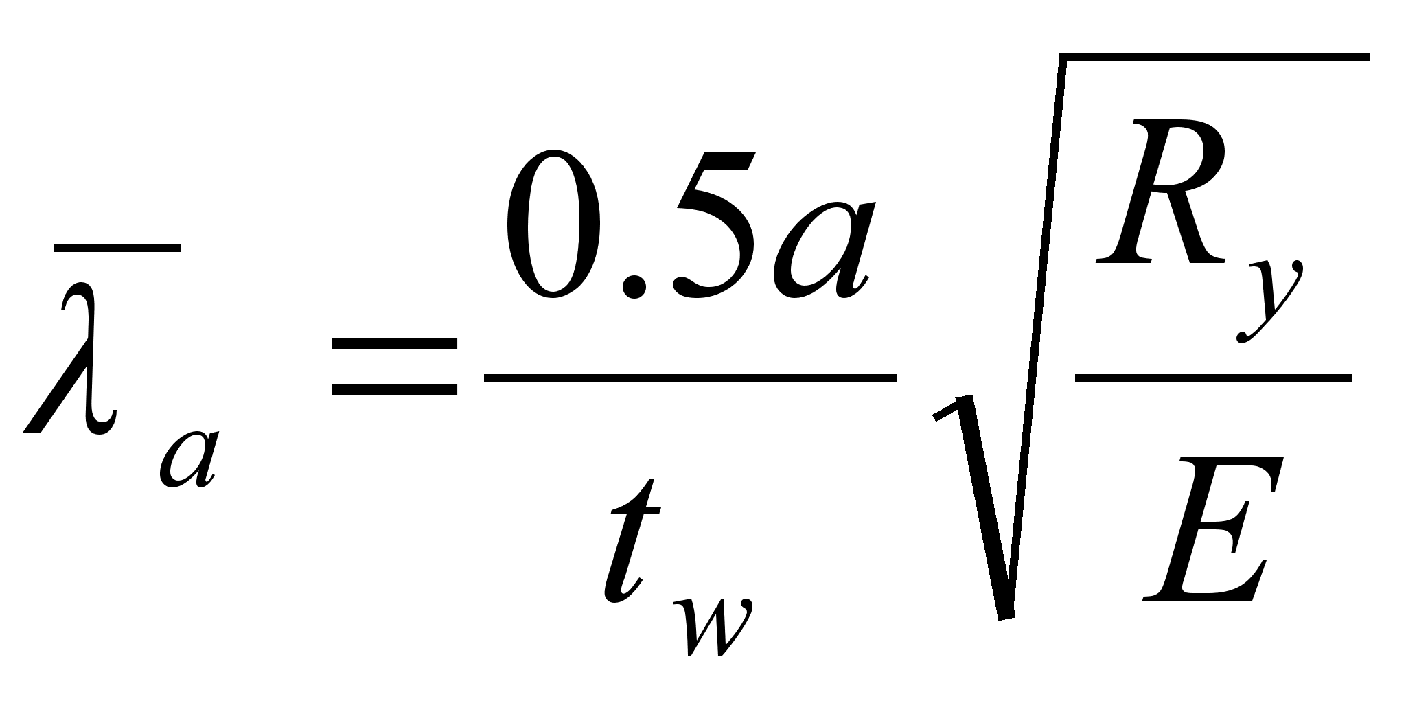 вычисляем по формуле (81) СНиП II–23–81* [3] Касательные критические напряжения по формуле (76) СНиП Коэффициент защемления стенки определяем по формуле (77) норм Критические