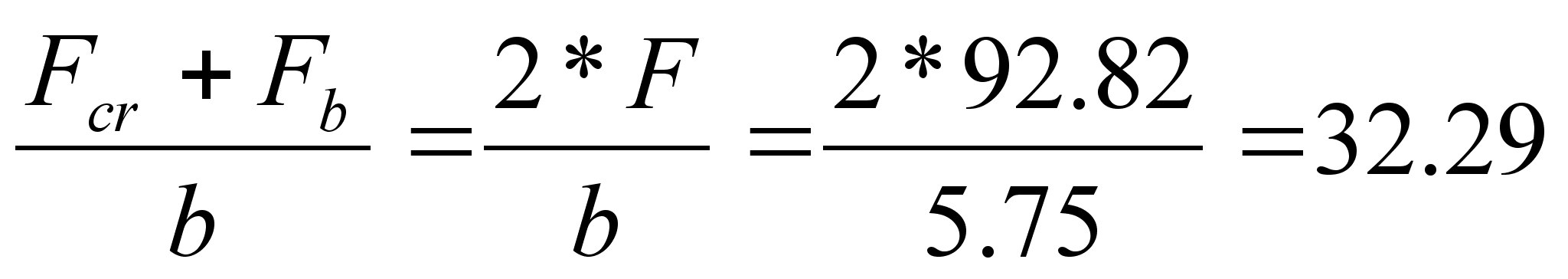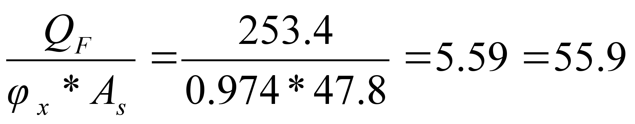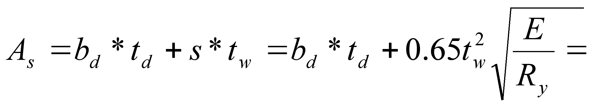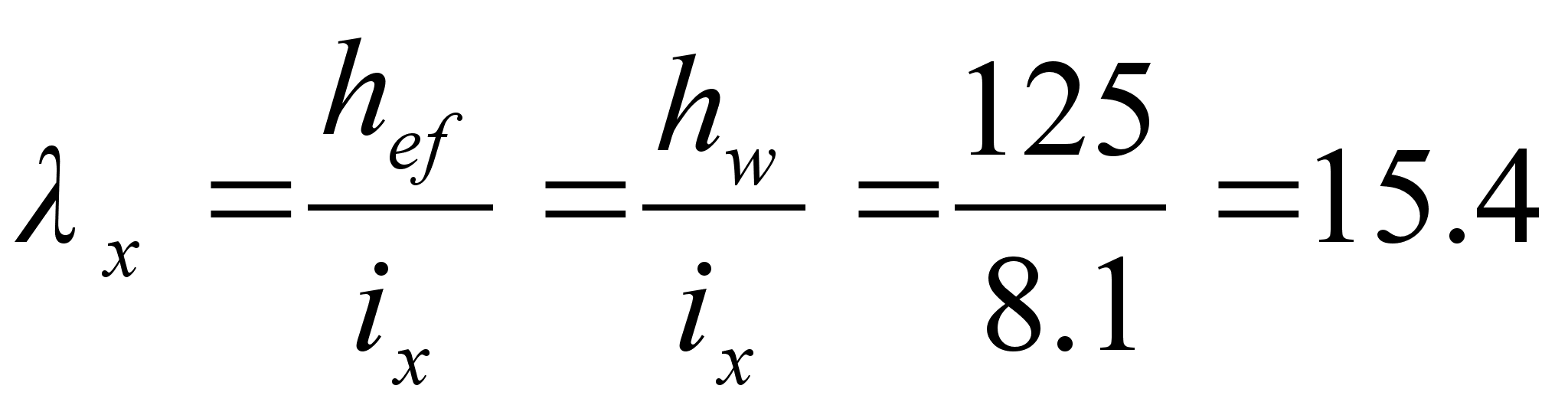 Момент инерции площади сечения условной стойки без учета (в виду малости) момента инерции стенки Радиус инерции Гибкость опорной стойки с расчетной длиной, рвной высоте стенки Коэффициент продольного изгиба по таблице 72 СНиП [3] – φx = 0.974. Проверка устойчивости условной опорной стойки