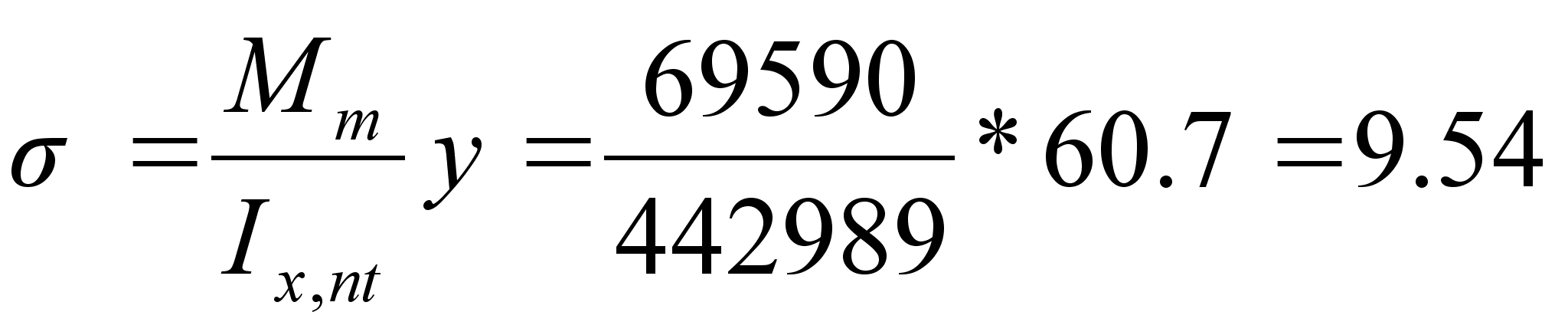 8.Проверка подобранного сечения на прочность. Нормальные напряжения в верхнем поясе