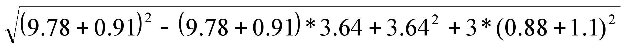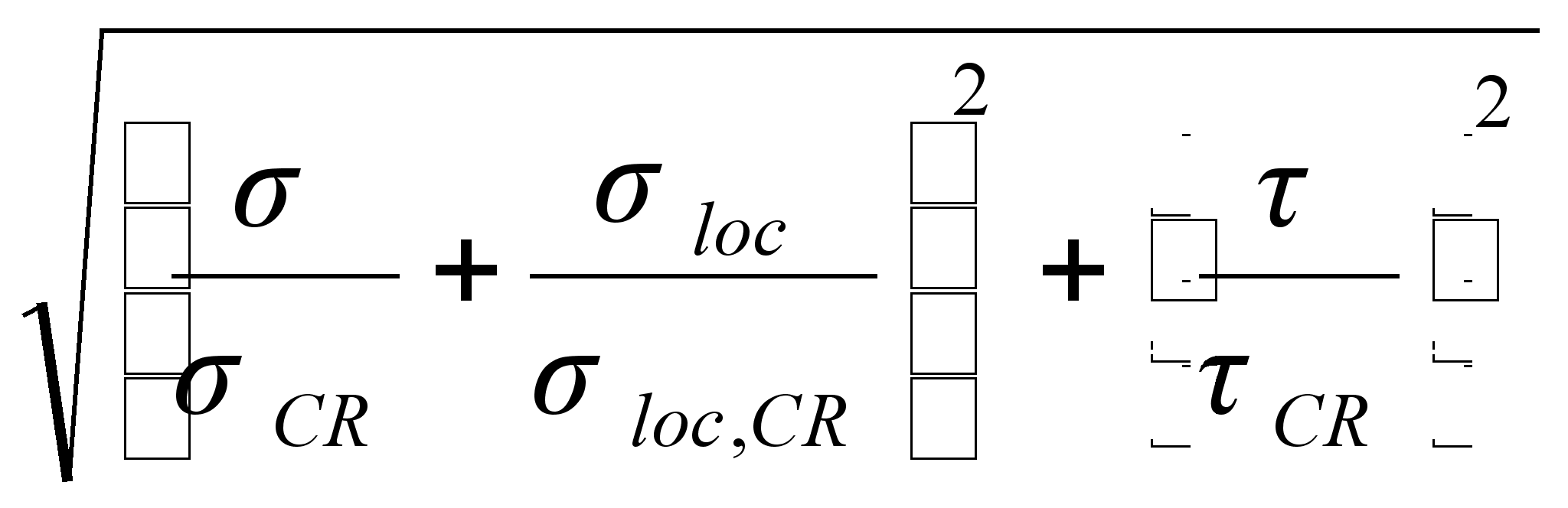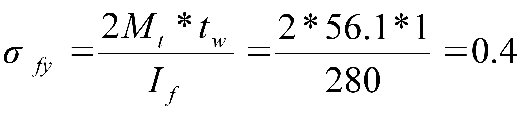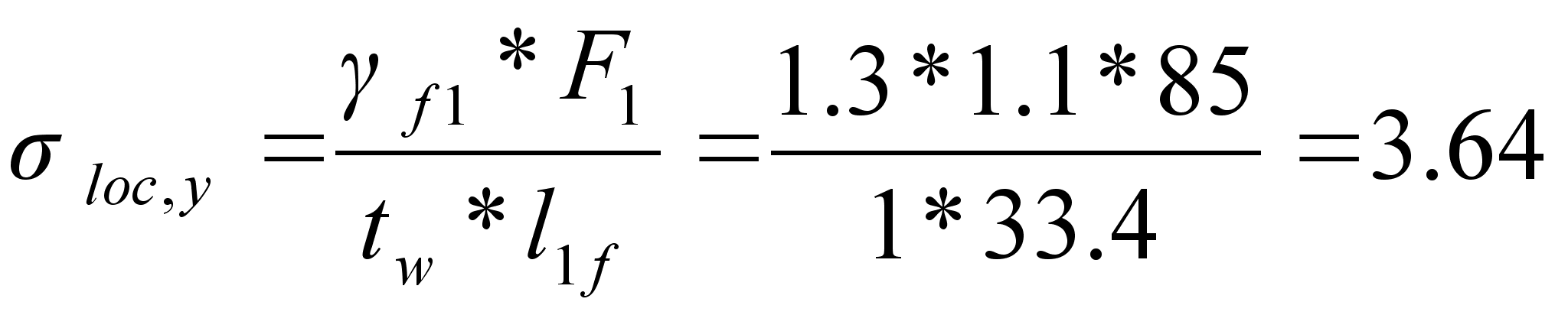 Сумма собственных моментов инерции кручния рельса и верхнего сжатого пояса балки Напряжения от местного изгиба стенки Локальные напрядения распорного воздействия от сосредоточенной силы под колесом крана Местные касательные напряжения от сосредоточенного усилия Местные касательные напряжения от изгиба стенки Проверка прочности для сжатой зоны стенки подкрановой балки из стали с пределом текучести до 430 МПа для кранов группы режимов 7К согласно п.13.34 норм [3], выполняется с учетом всех компонент напряженного состояния по формулам (141…144) :