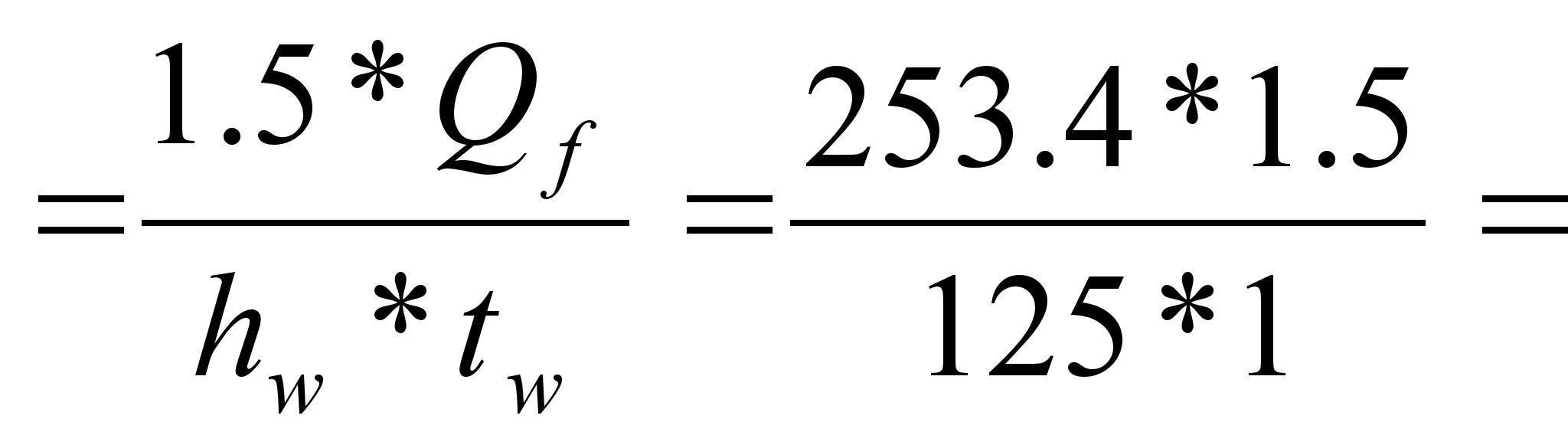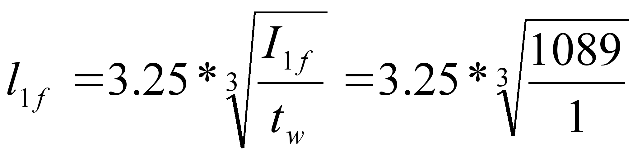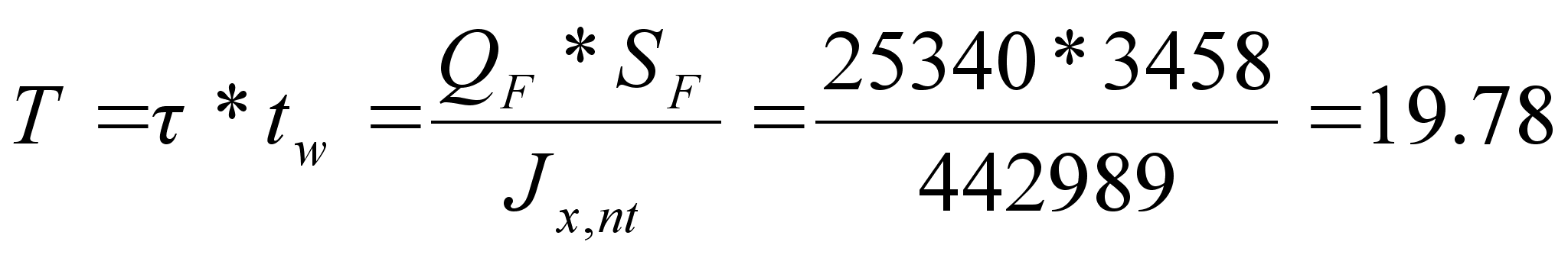 где – F1 = f*Fn = 1.1*85 кН – расчетная сосредоточенная нагрузка ; – f1 = 1.3 – коэффициент надежности для кранов группы 7К, согласно п 4.8.[1]; – IR =1082 см4 – момент инерции кранового рельса типа КР – 70 . Требуемая толщина стенки из условия прочности на срез без учета работы поясов :