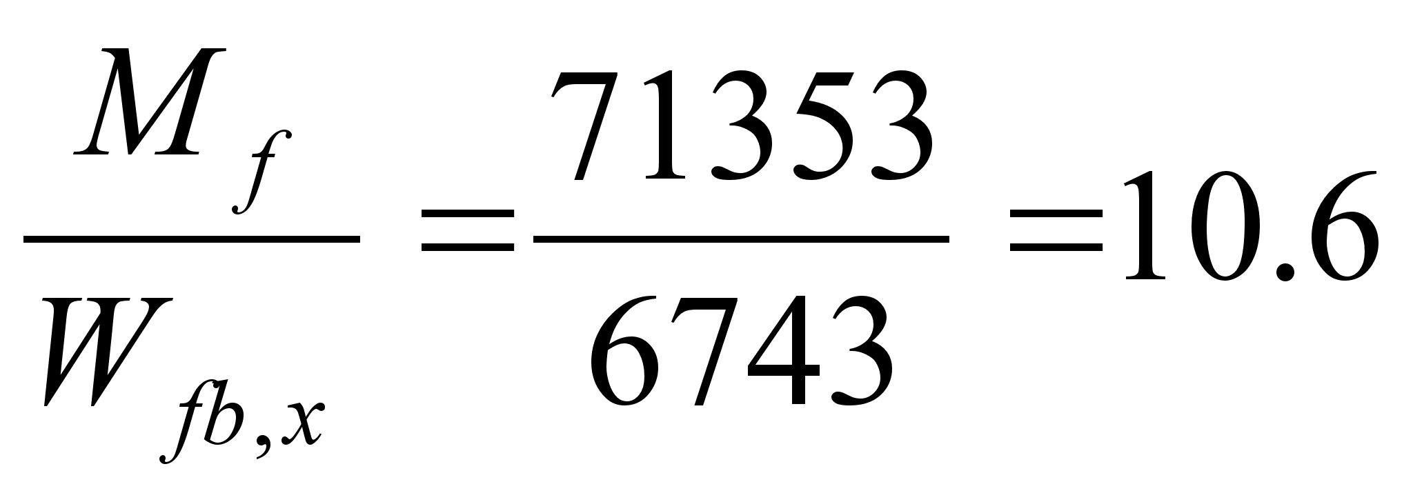 = 193.38 кН Vв = Rf – Va = 4*92.82 – 193.38 = 177.9 кН Максимальный момент от вертикальной нагрузки в сечении под критическим грузом, ближайшим к середине балки : Mmax = M3 = Va*L3 – F*(L3 – L1) – F*(L3 – L2 ) = = 193.38*6.25 – 92.82(6.25 – 1.55) – 92,82(6.25 – 5.25) = = 679.551 кН*м. Расчетный изгибающий момент с учетом собственного веса подкрановой конструкции и возможной временной нагрузки на тормозной площадке Mf = Mx = *Mmax = 1.05*679.551 = 713.53 кН*м, где =1.05 – коэффициент учета собственого веса для балки пролетом 12 м. Соответствующая ему расчетная поперечная сила Qc = (Va – 3F) = 1.05*( 193.38 – 3*92.82 ) = – 89.33 кН. Наибольший изгибающий момент от расчетных горизонтальных сил, вызванных перекосами моста крана :