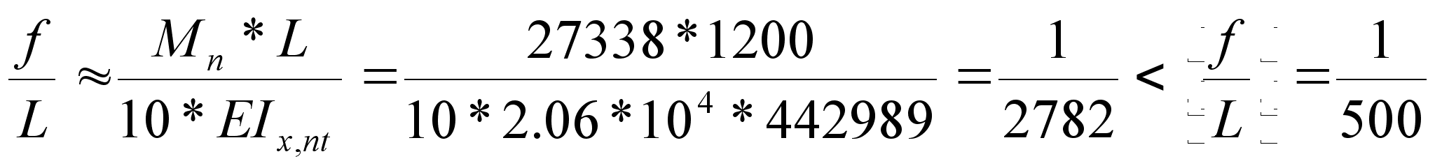 Расчетные значения поперечной силы от вертикальной нагрузки : Qf = Qmax = 1.05*241.33 = 253.4 кН. Максимальный нормативный момент в балке от загружения её одним краном, установленным на max M : Опорные реакции :