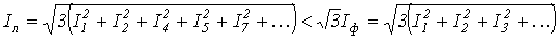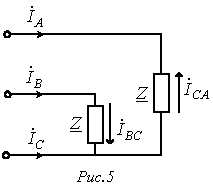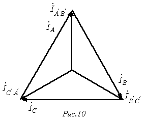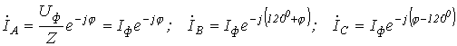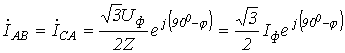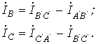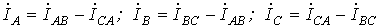 По найденным фазным токам приемника на основании первого закона Кирхгофа определяются линейные токи: