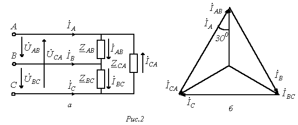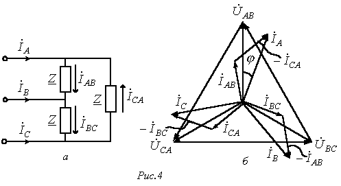 Комплексы линейных токов можно найти с использованием векторной диаграммы на рис. 2,б, из которой вытекает: