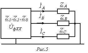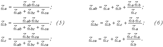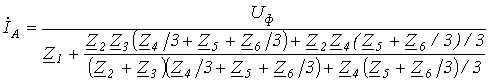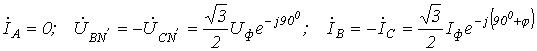Так как все исходные и вновь полученные звезды нагрузки симметричны, то потенциалы их нейтральных точек одинаковы. Следовательно, без изменения режима работы цепи их можно (мысленно) соединить нейтральным проводом. После этого из схемы выделяется базовая фаза (обычно фаза А), для которой и осуществляется расчет, по результатам которого определяются соответствующие величины в других фазах. Пусть,