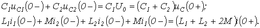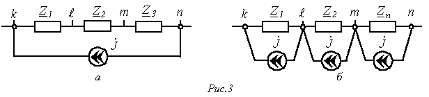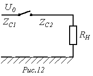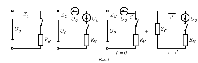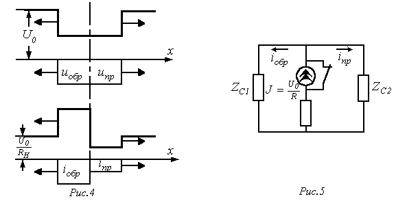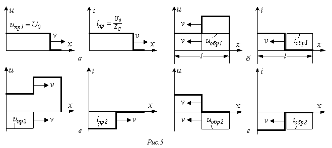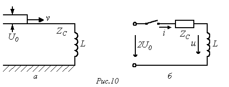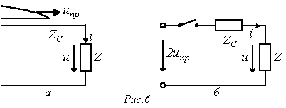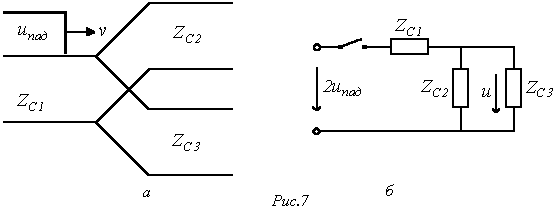 при этом расчетная схема замещения для момента прихода волны к стыку линий имеет вид на рис. 7,б.