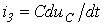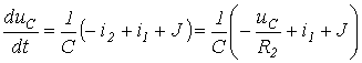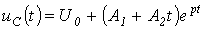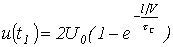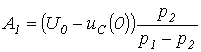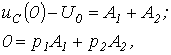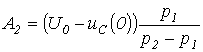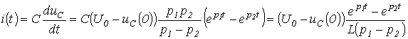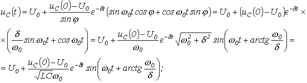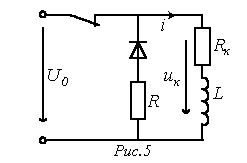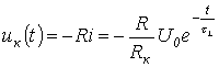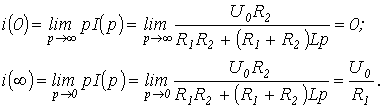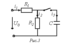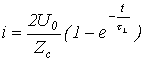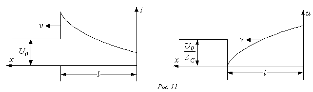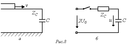 Для расчета напряжения на конденсаторе и тока через него в момент прихода волны к концу линии составим схему замещения с сосредоточенными параметрами (см. рис. 8,б). Для этой схемы можно записать