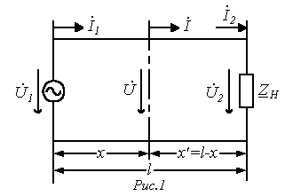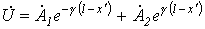 Это напряжение определяется суммой прямой (падающей) и обратной (отраженной) волн, т.е.