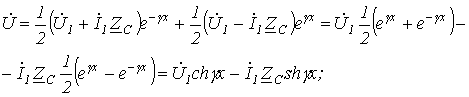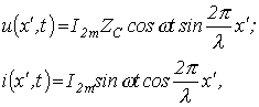 С учетом этого выражения для отраженных волн напряжения и тока в произвольной точке линии имеют вид