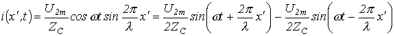 Соответственно для отраженной волны тока можно записать