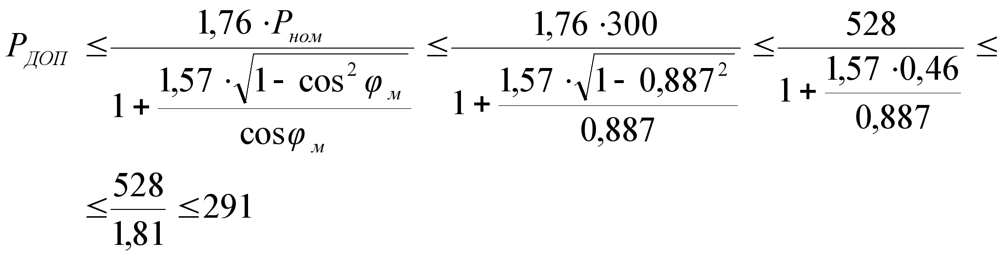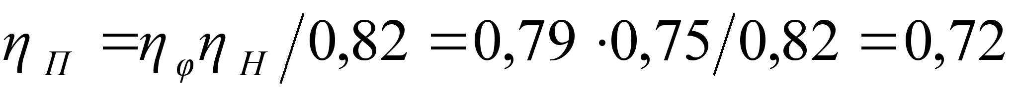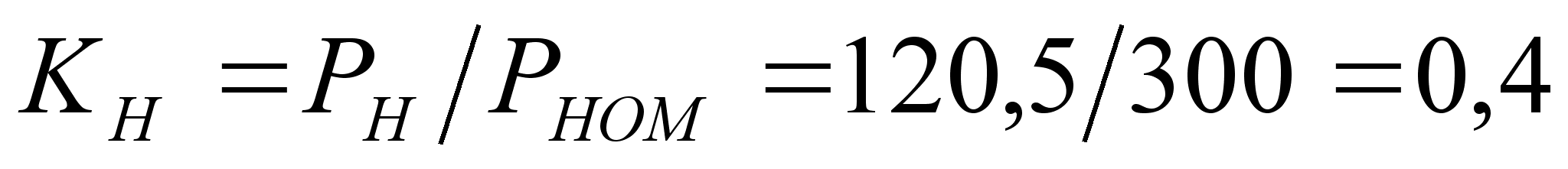 где Pном – номинальная мощность преобразователя с учетом варианта его настройки. Коэффициент мощности оказывает влияние не только на использование установленной мощности преобразователя, но также и на его КПД. Поэтому КПД преобразователя определяем с учетом cos φн и Кн. Для этого по графику из приложения 1, методички по КП, определим частные значения КПД ηφ, ηн в зависимости от cos φн и Кн: ηφ=0,79; ηн=0,75. Рассчитаем общий КПД преобразователя по формуле: