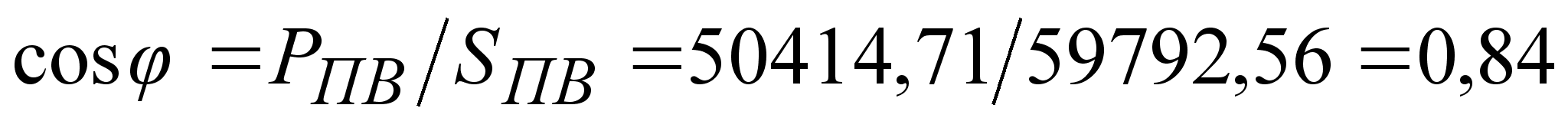 Выбранный тип плавкой вставки: 100 А. Определим cos φ питающей установки: