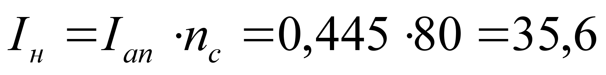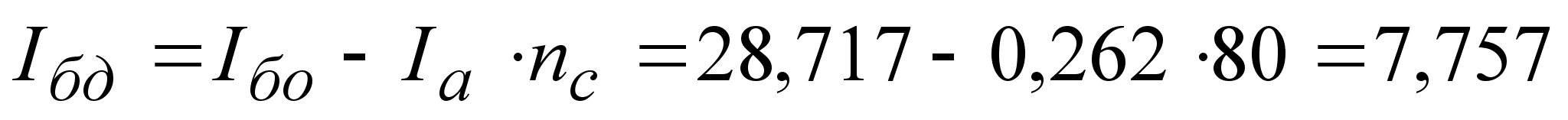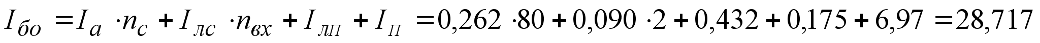 где nc – число стрелок ЭЦ; nвх – число подходов к станции; Ia =0,262 А – расход тока в расчете на одну стрелку; IРП=0,432 А – потребляемый приборами ток, независящий от числа стрелок; IЛП=0,175 А – потребляемый лампочками ток в расчете на пост ЭЦ; IЛС=0,090 А – потребляемый ток в расчете на один подход; IП – потребляемый от батареи преобразователем ток (из формулы 9). Разрядный ток батареи в дополнительном режиме резервирования равен:
