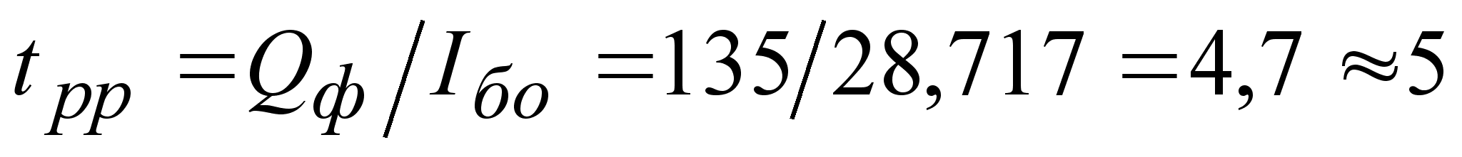 где Qp – расчетная емкость батареи; Кс=0,85 – коэффициент снижения емкости аккумуляторов от старения; ρ – коэффициент интенсивности разряда, определяемый по полученному значению длительности разряда tpp (см. табл. [1], с. 22); Кt=0,008 – температурный коэффициент емкости; t0=+150 – температура электролита во время разряда батареи. Расчетная длительность разряда батареи tpp током основного режима Iбо составляет: