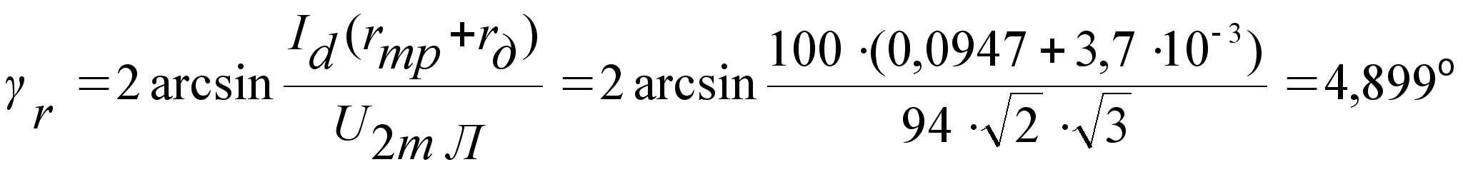 Величину угла перекрытия фаз (угла коммутации) найдем из выражения