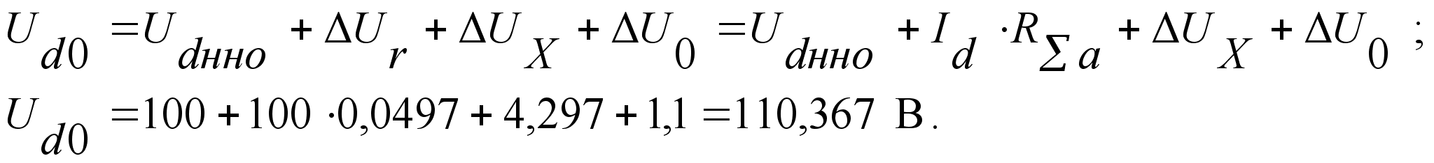 Уточнение коэффициента трансформации с учетом падения напряжения на элементах силовой схемы.Определяем значение выпрямленного напряжения холостого хода с учетом распределения падения напряжения на элементах.