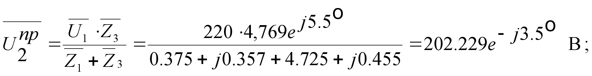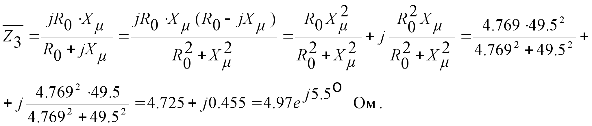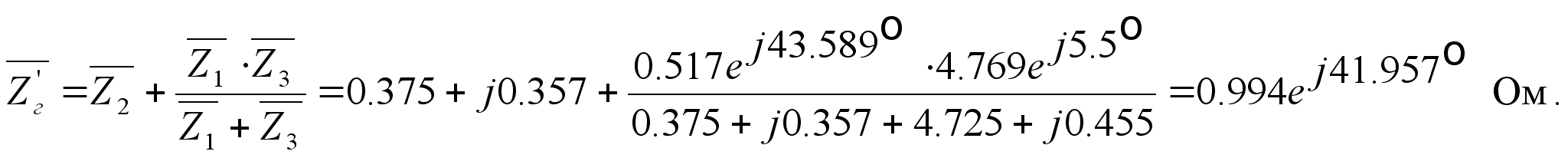 Приведение сетевого напряжения к вентильной стороне трансформатора.Преобразуем Т – образную схему замещения (рис.3), рассчитав комплексные сопротивления во всех ветвях схемы, получим следующую схему: