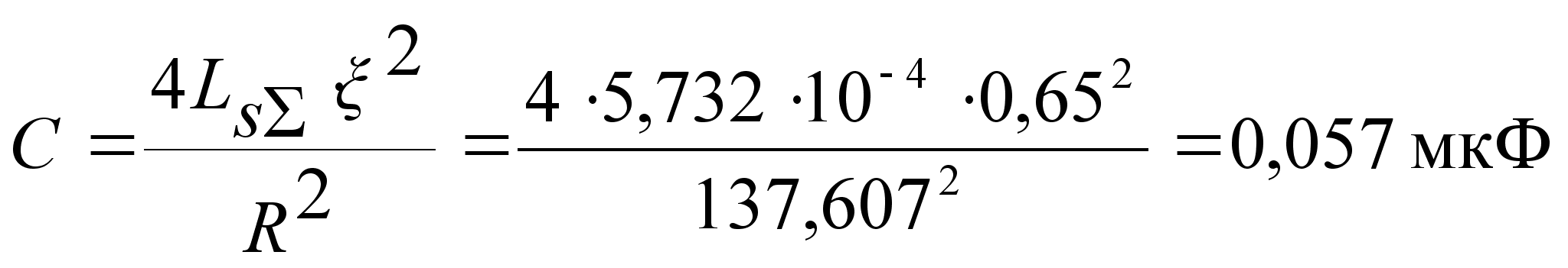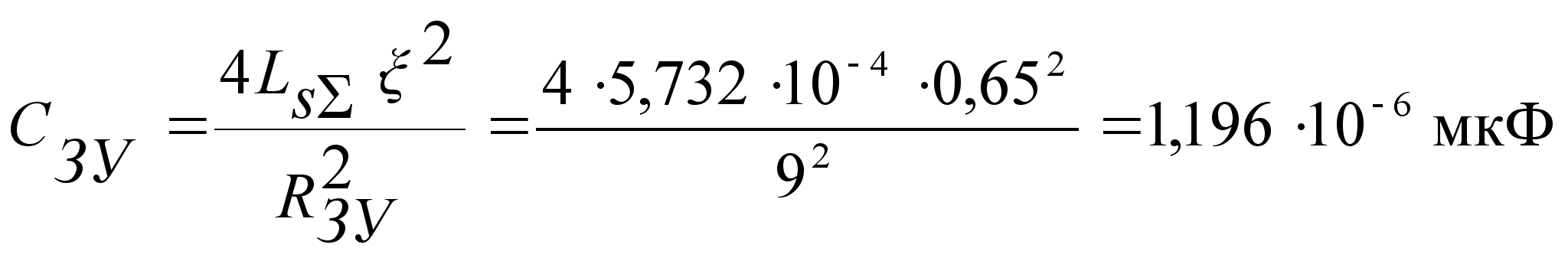 Величину емкости конденсатора ЗУ определим, используя выражение, полученное выше (коэффициент демпфирования ξ и значение LsΣ остаются теми же):