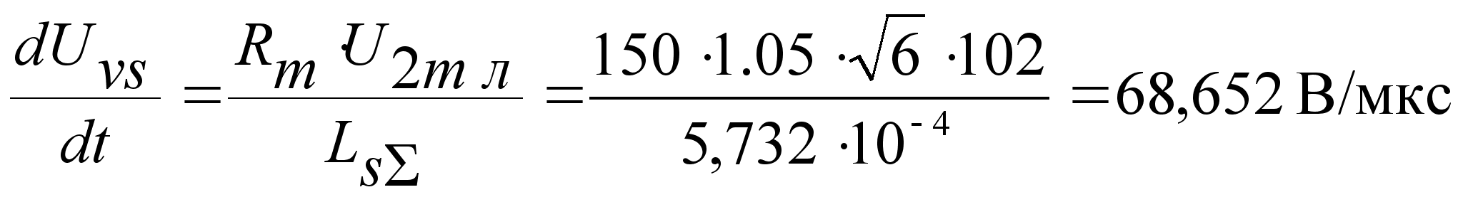 В/мкс]. Δ(du/dt)=68,652–50=18,652 В/мкс, т.е. порог ограничения скорости нарастания напряжения при коммутации с вентиля на вентиль увеличился на 18,652 В/мкс. для случая перенапряжения по пункту б):