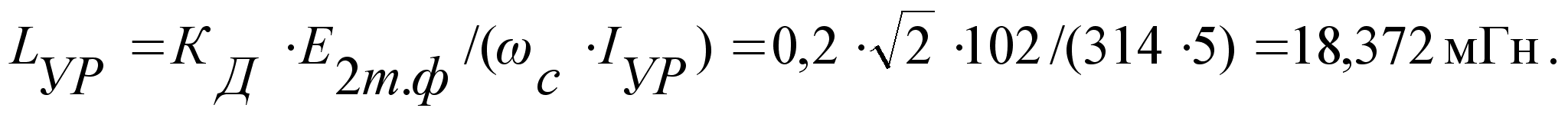 Определим типовую мощность каждого реактора. Для данной схемы ТП она равна SLур = 0,0286 Рd = 0.0286·10 · 103 = 0,286 кВА. Максимальный коэффициент КД для данной преобразовательной схемы равен КД = 0,4. Через каждый реактор протекает ток, равный IH=Id /2 = 50A. Примем величину действующего значения статического уравнительного тока, равной IУР = 0,1 IH = 0,1·50 =5 А. Итак, определим индуктивность LУР: