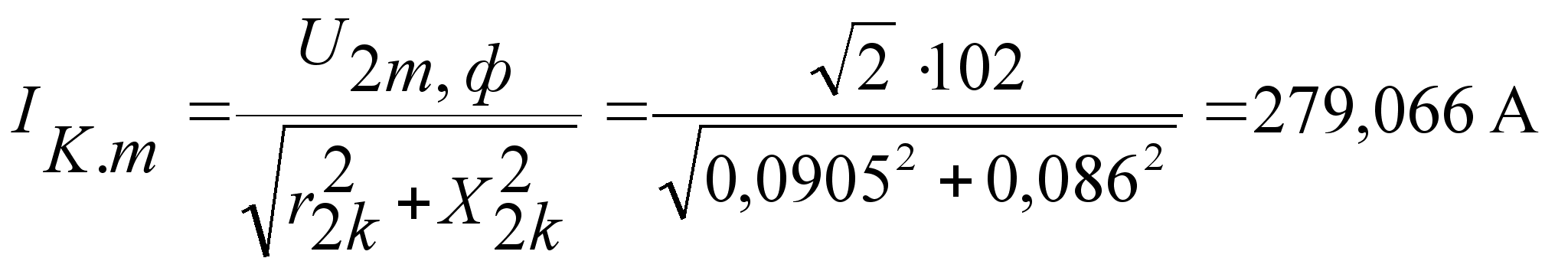 U2m , ф – амплитуда фазного напряжения при холостом ходе; Х2к и r2к – приведенные к вентильной стороне значения индуктивного сопротивления рассеяния трансформатора и его активное сопротивление. Подставив числовые значения, получим