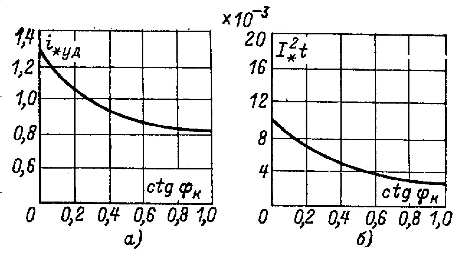 Рис . 7 Амплитуда тока в тиристорах (а) и интеграл предельной нагрузки (б) при внешнем к.з. тиристорного преобразователя Определяем сtg φк: