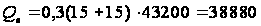 Среднее количество часов работы ремонтного предприятия в сутки - 8. Продолжительность отопительного периода в сутках составляет 180 дней. Наружная температура -25ОС. Средняя температура отопительного периода -15ОС. Температура внутри помещения 15ОС. 3.4.3. Определение годового количества теплоты на отопление и вентиляцию