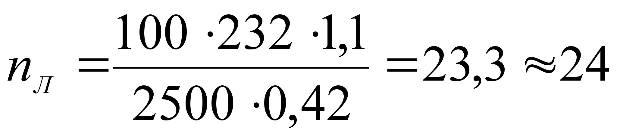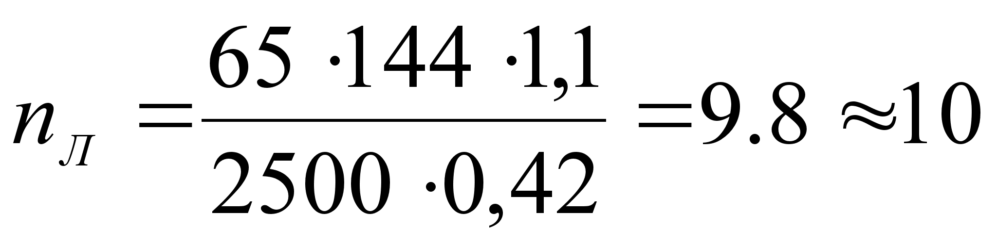 3.1.9. Определение количества ламп для участка топливной аппаратуры