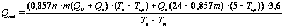 Количество теплоты, отдаваемой нагревательными приборами, равное количеству теплоты, необходимой для нагрева воздуха в помещении до заданной температуры определяется из выражения