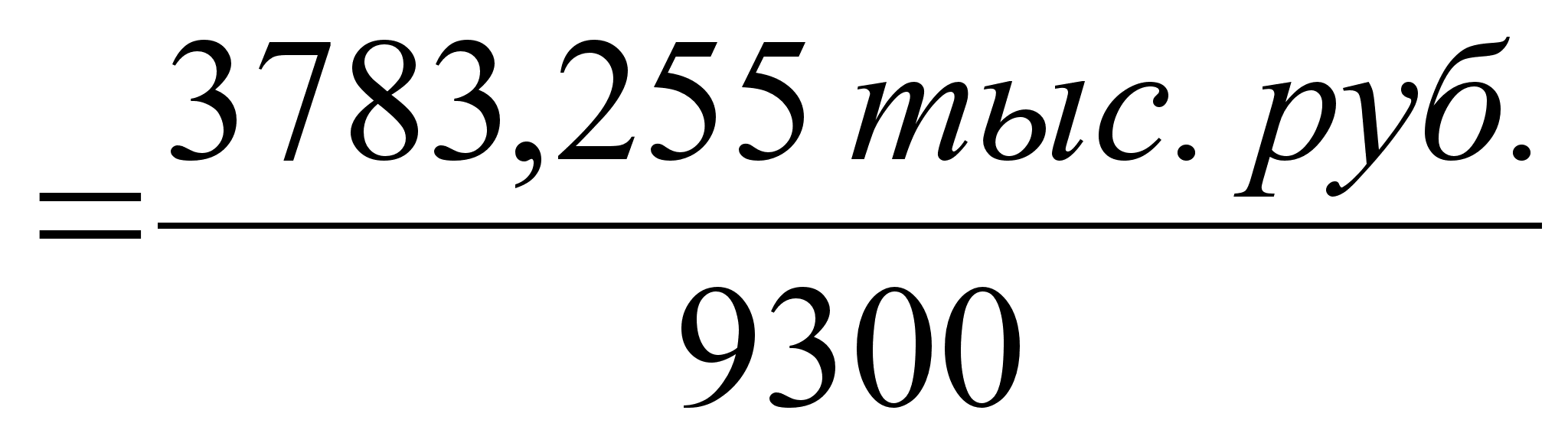 В тоже время выручка от реализации продукции с учетом возможного увеличения объема производства и реализации продукции составляет 3783,255 тыс. руб. Тогда 9300 усл. ден ед. = 3783,255 тыс. руб.