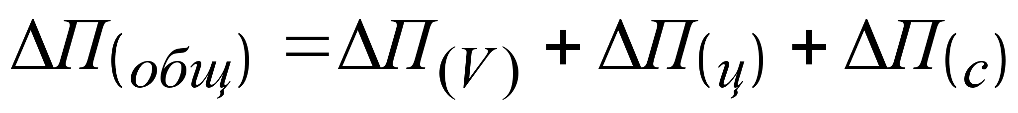 Здесь также сумма влияния факторов должна быть равна общему отклонению прибыли: